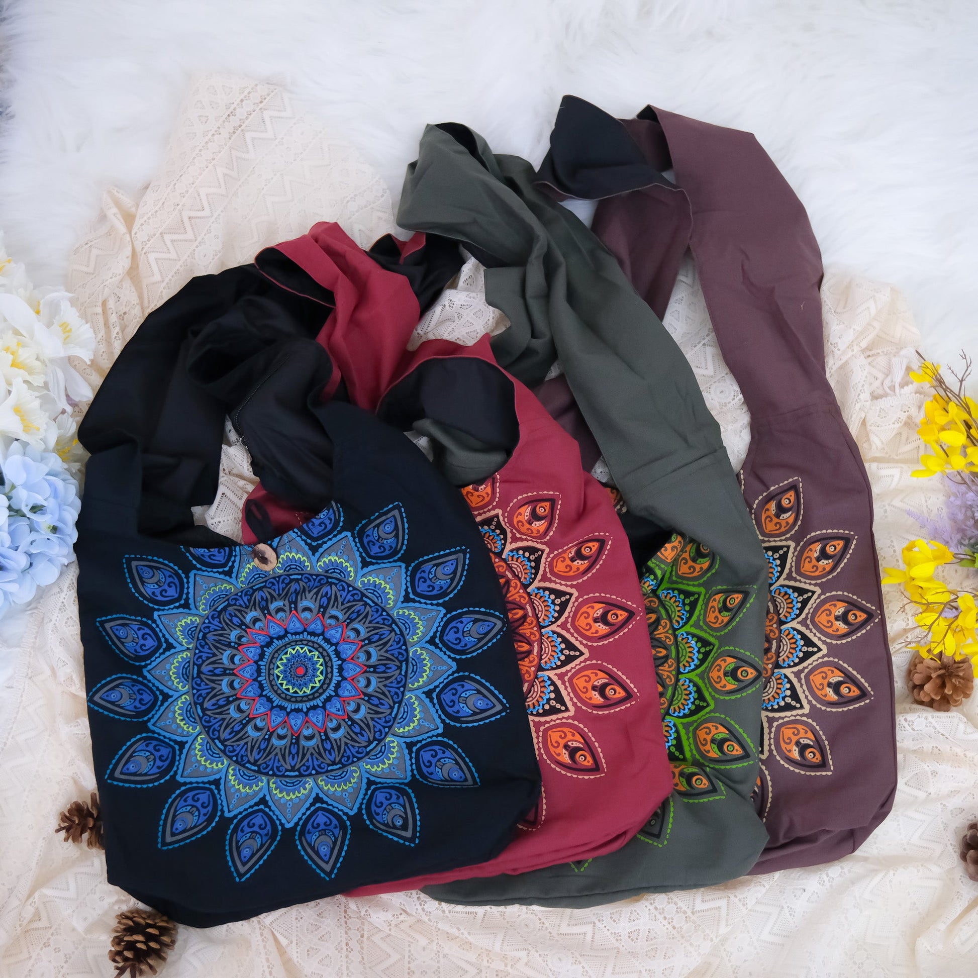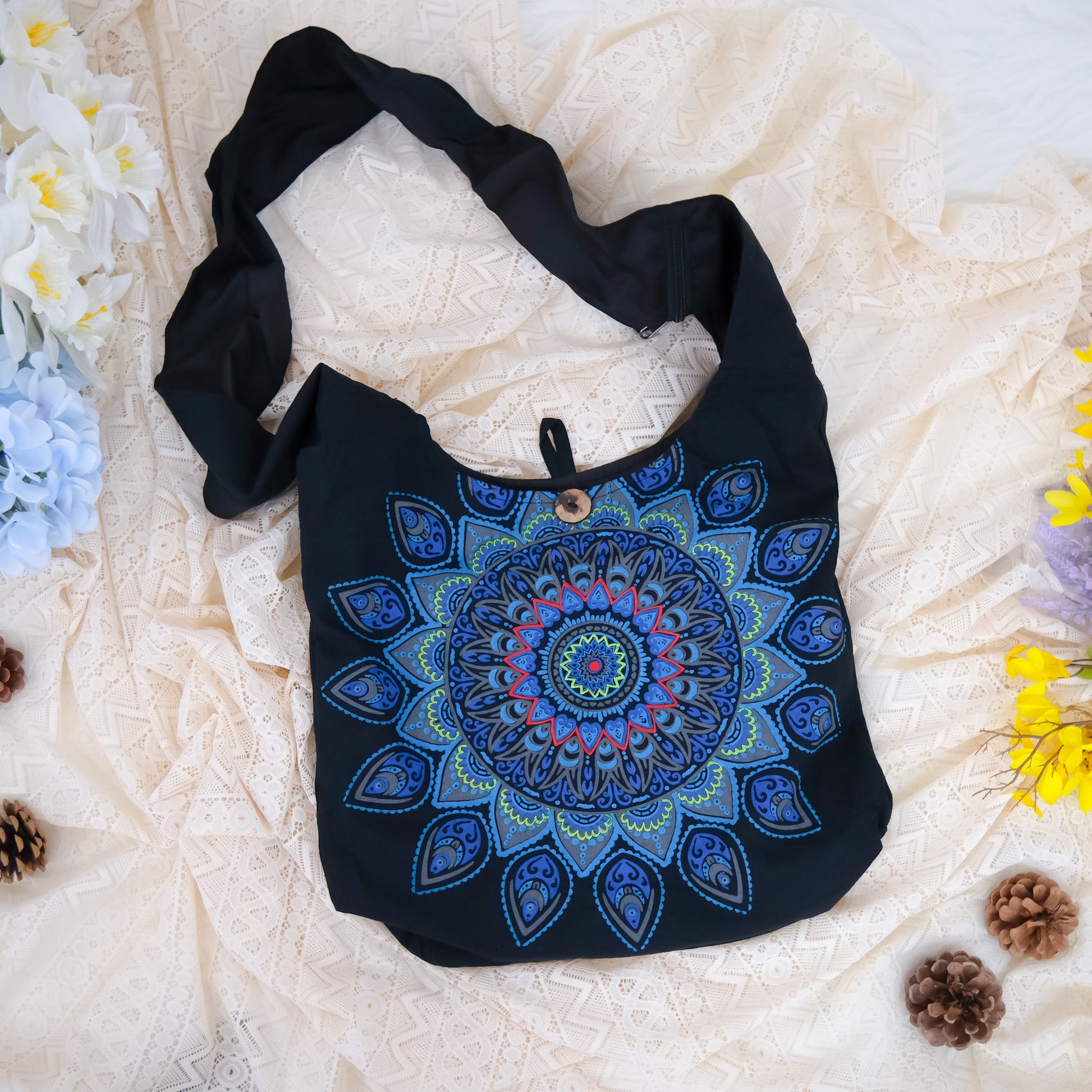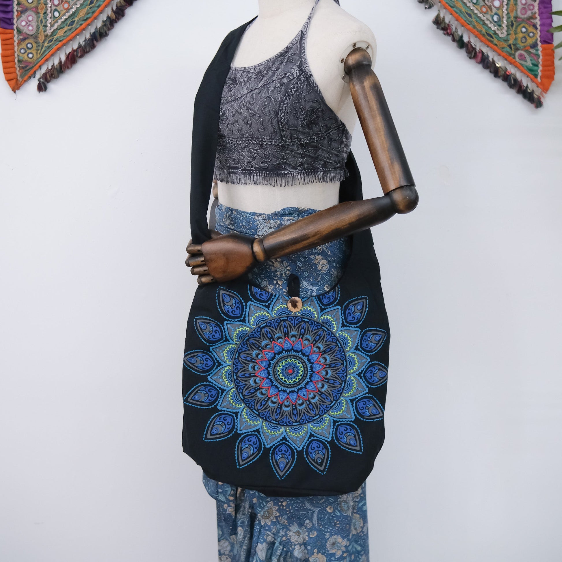This handmade Boho Mandala Messenger Bag offers a unique blend of bohemian and hippie style. With its versatile design, it can be worn as a shoulder bag or a sling bag, making it perfect for both men and women. Add a touch of bohemian flair to your wardrobe with this stylish and unisex bag.