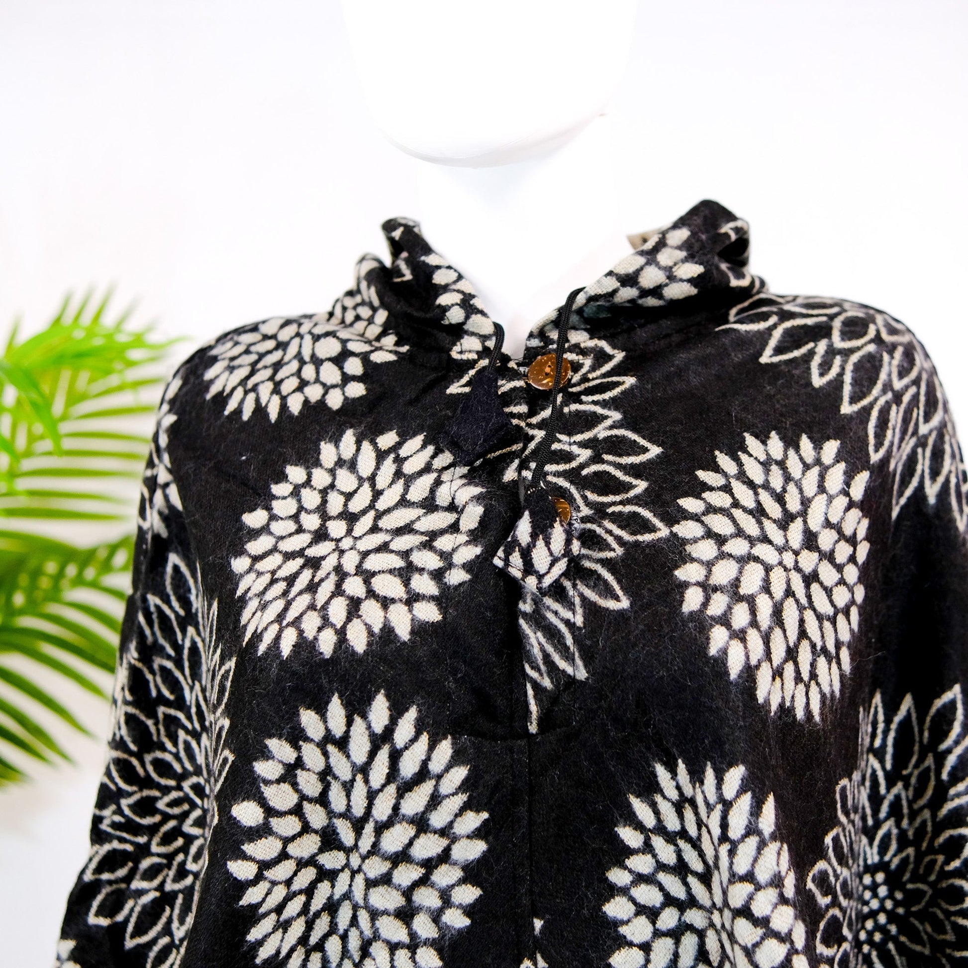 Stay warm and fashionable this winter with these soft, oversized, hand-loomed wool blend ponchos. Perfect for unisex wear, these hippie ponchos feature a hoodie and pockets to keep you cozy in the harshest of temperatures.