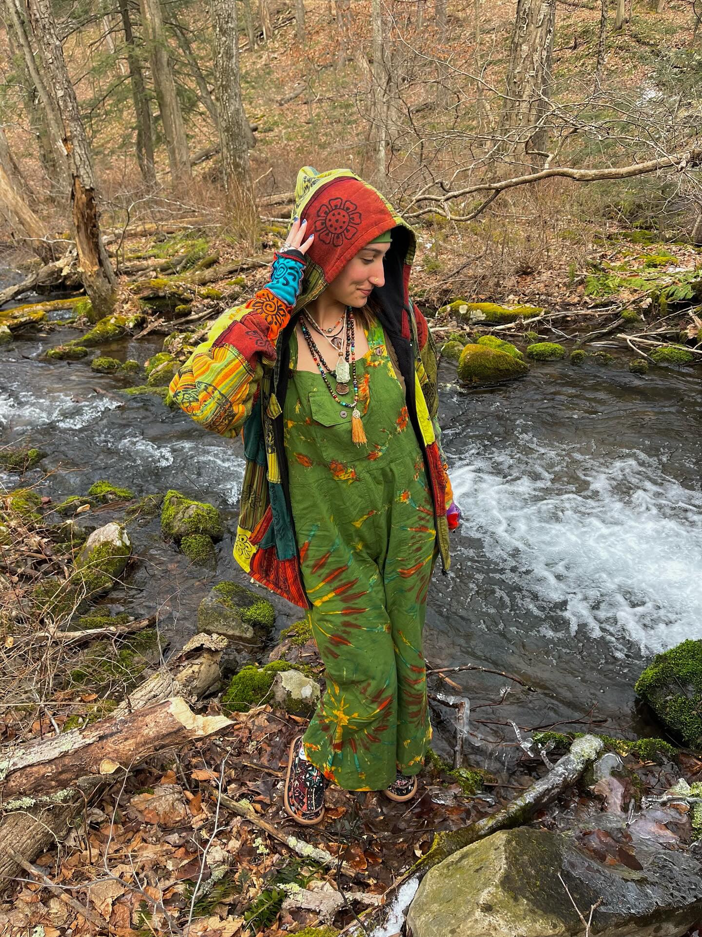 Experience the unique blend of handmade craftsmanship and comfort with our Funky Tie Dye Jumpsuit. Made with soft cotton and featuring a wide leg and bell bottom design, this unisex jumpsuit is perfect for any body type, including plus sizes. Channel your inner 90s fashionista with the fun and funky colors, perfect for achieving that hippie, boho, or bohemian look.