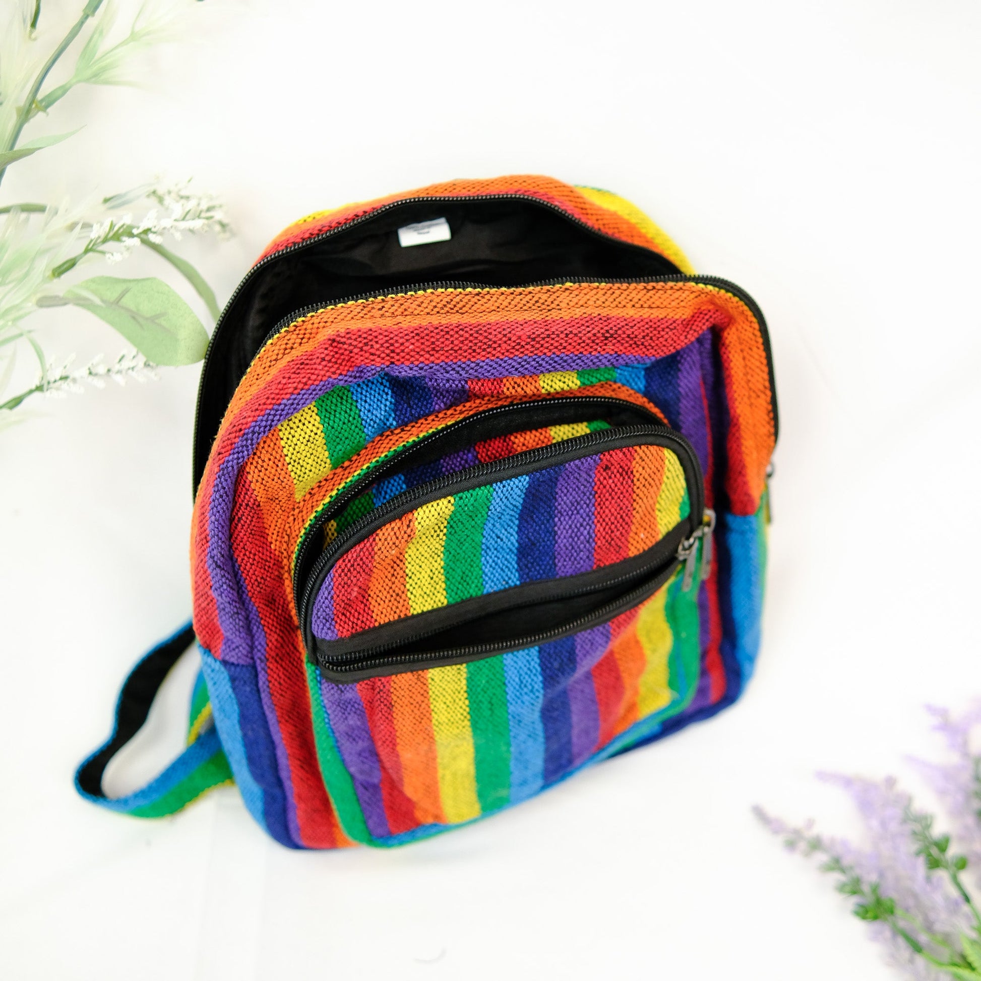 Our Hemp Rainbow Pride Back Pack is the perfect accessory to show off your pride. Handmade using sturdy hemp, this bag is great for everyday use or festival fashion. It features a unisex design and medium size, along with a multicompartment to store your belongings. Keep your style hippie-chic with this unique bag.