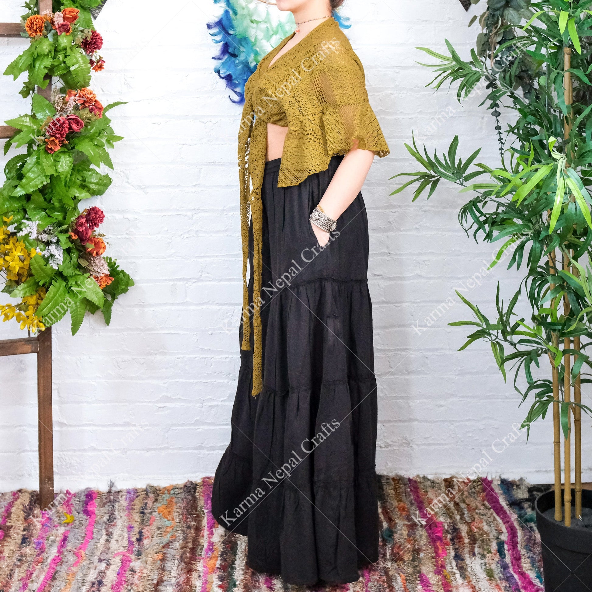 Expertly handcrafted from soft, earthy cotton lace, the Luna Lace Top is the epitome of versatile boho fashion. With its tie top and short ruffle sleeves, this top can be styled in multiple ways to suit your whimsical vibe. Available in one size and plus size, it comes in a range of earthtone colors for the perfect earthy touch to your wardrobe.