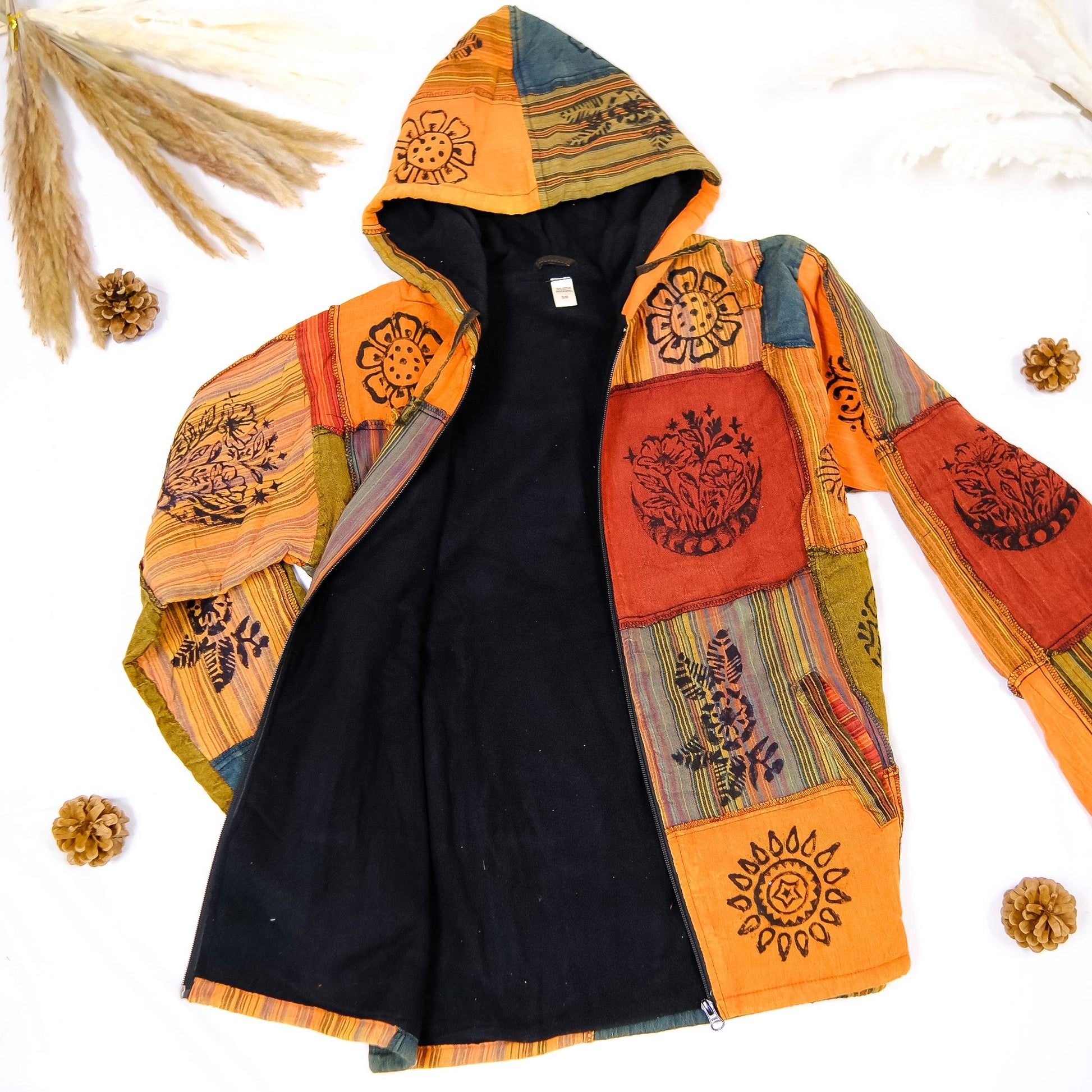 This Patchwork Hippie Hooded Winter Jacket is the ideal addition to your winter wardrobe. Crafted from high-quality cotton, this thick warm sweater is fleece lined, making it extra cozy for those chilly days. With its unisex design and inclusive plus size options, this jacket is ideal for anyone looking to add a boho twist to their winter style. The patchwork design and handmade craftsmanship give the jacket a unique touch that will make you stand out from the crowd. The zip up sweatshirt style allows for easy layering and features pockets that provide ample storage space while on-the-go. The long sleeves and loose-fitting clothing length provide maximum coverage in colder weather. This Jacket features a Zip Closure type making it easy to wear on-the-go. Embrace retro, chic, basic or vintage looks with this classic yet fashion-forward piece that will keep you warm all winter long!