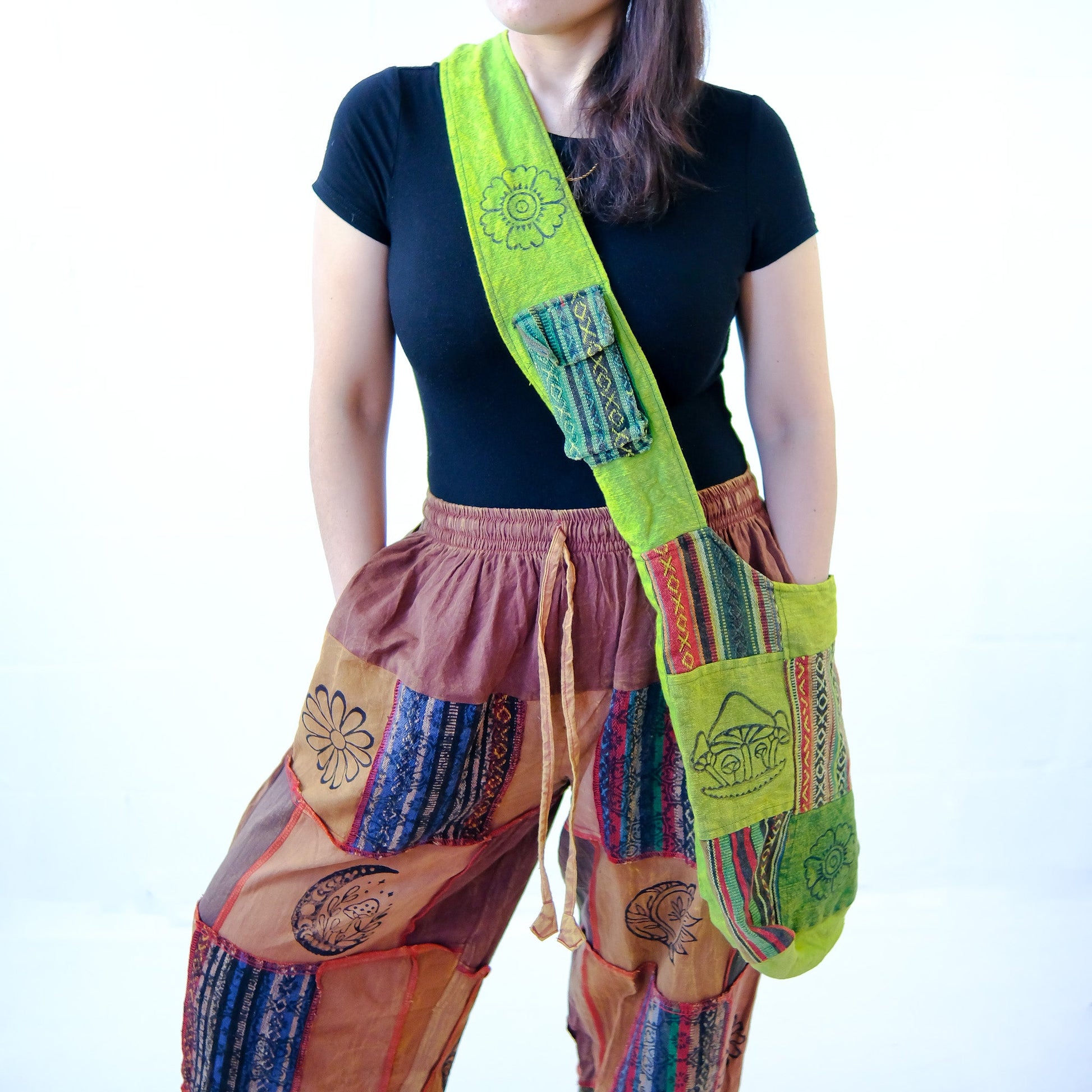 This handmade Patchwork Cotton Messenger Bag features a sturdy, washed cotton patchwork design, perfect for festival fashion or a beach style look. With a unisex hobo bag shape and multiple pockets, it's both functional and stylish. Zipper closure ensures secure storage for your belongings.
