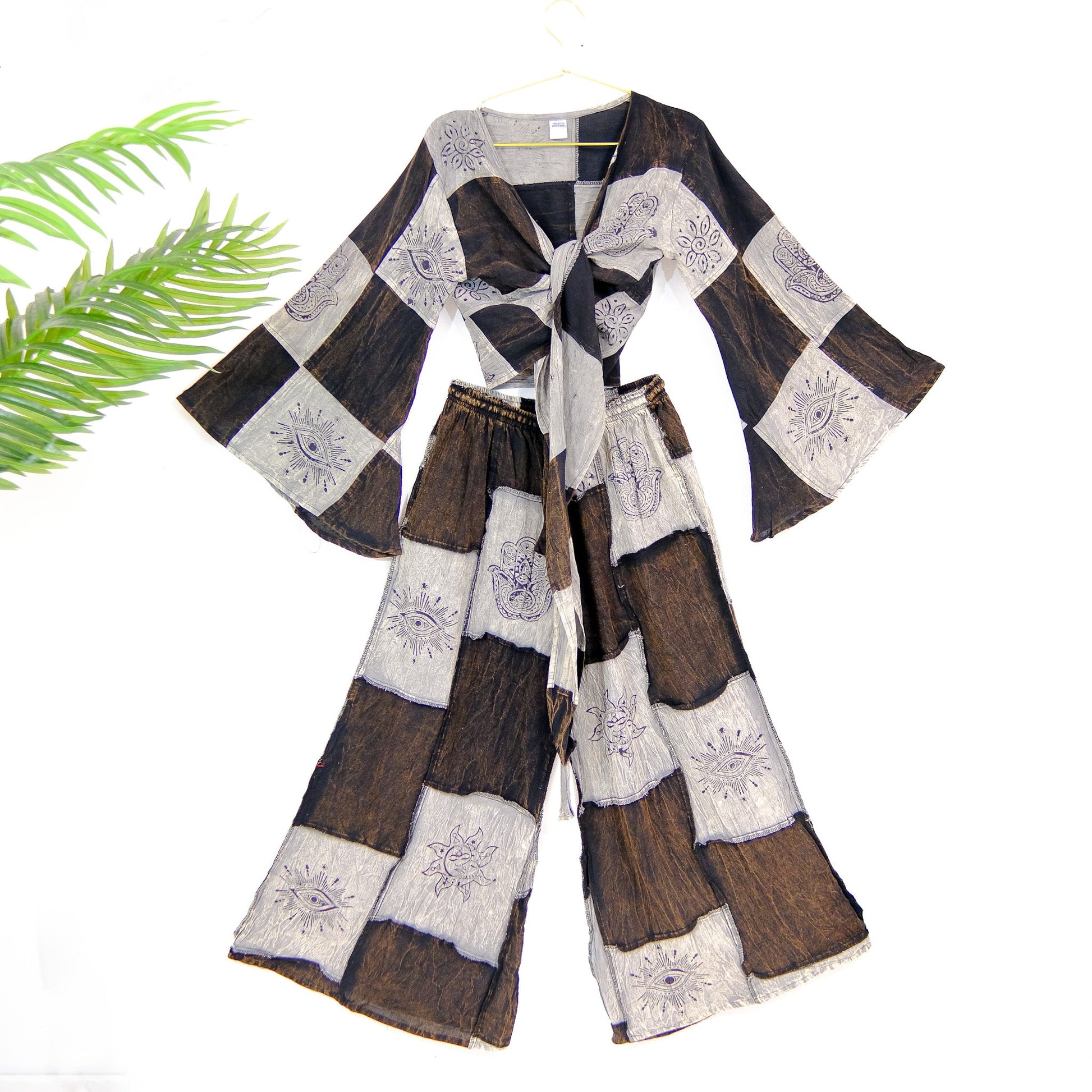 Patchwork Cotton Palazzo Wide Leg Pant Sets