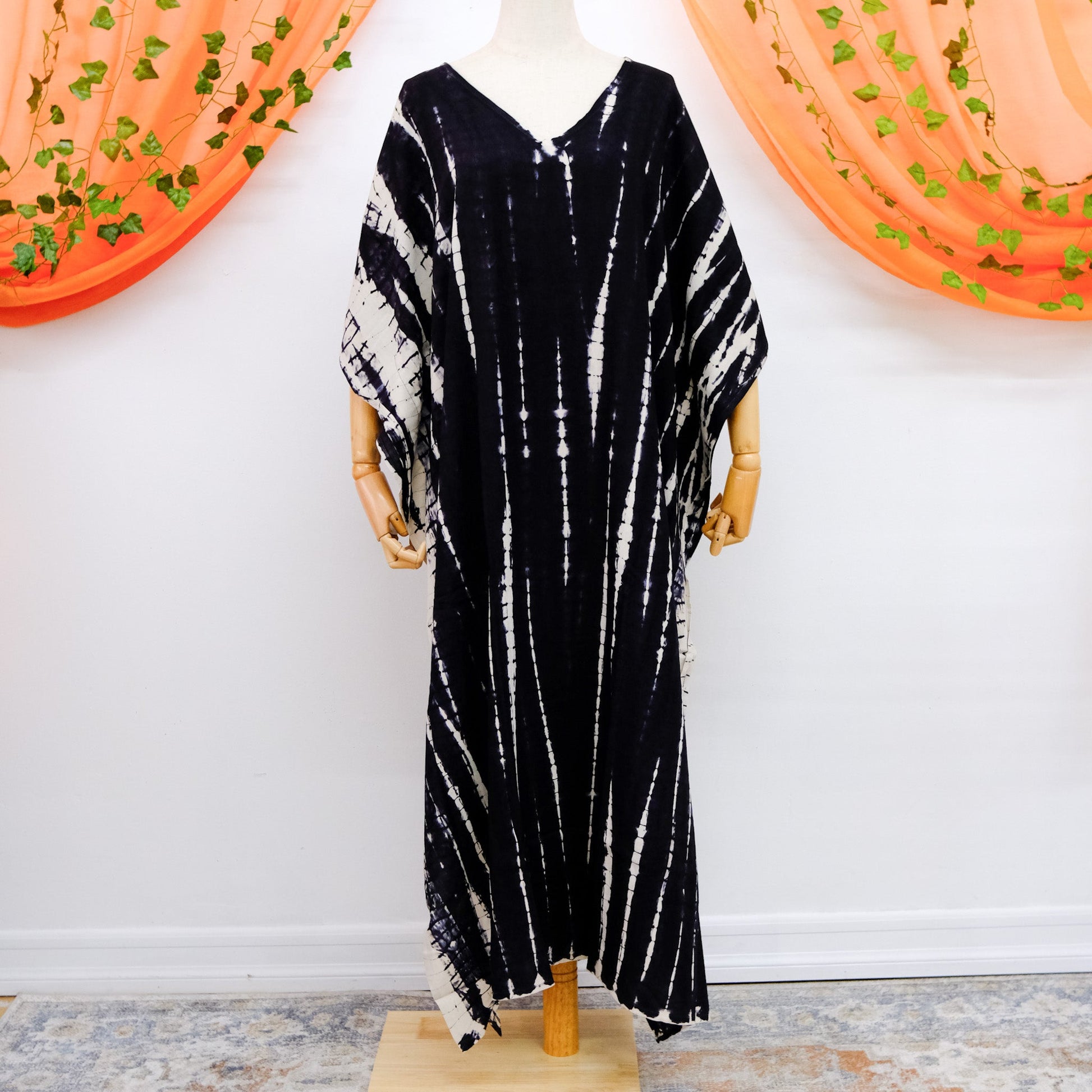 This Tie Dye Long Kaftan Dress is an eye-catching beach coverup featuring a tie-dye pattern, a long kaftan silhouette, and a loose fit for maximum comfort and breathability. Its kimono-style design adds an elegant boho touch perfect for hot summer days.