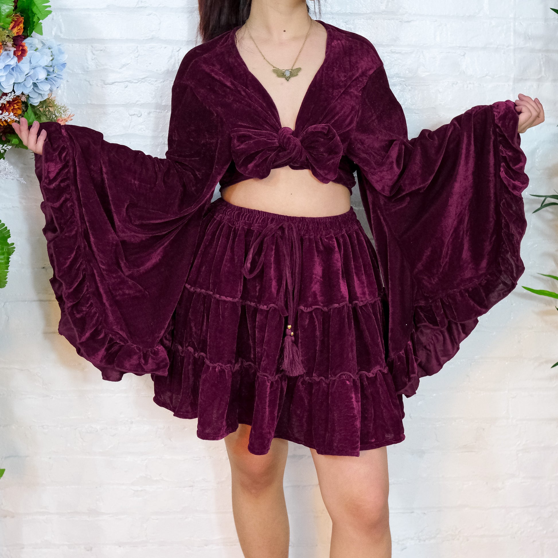 Tiered Flowy Mini Velvet Skirt with Ruffle Top