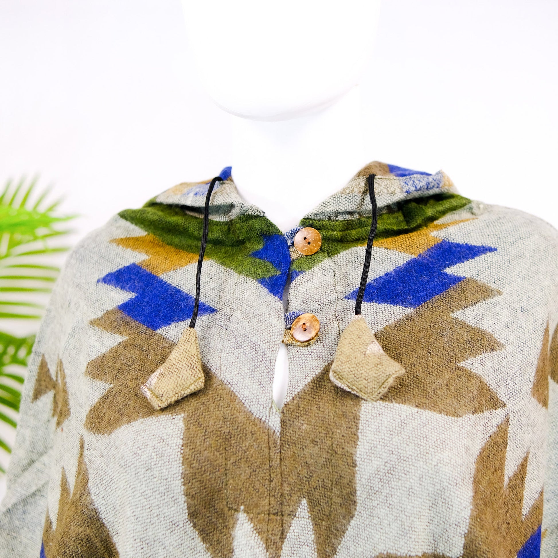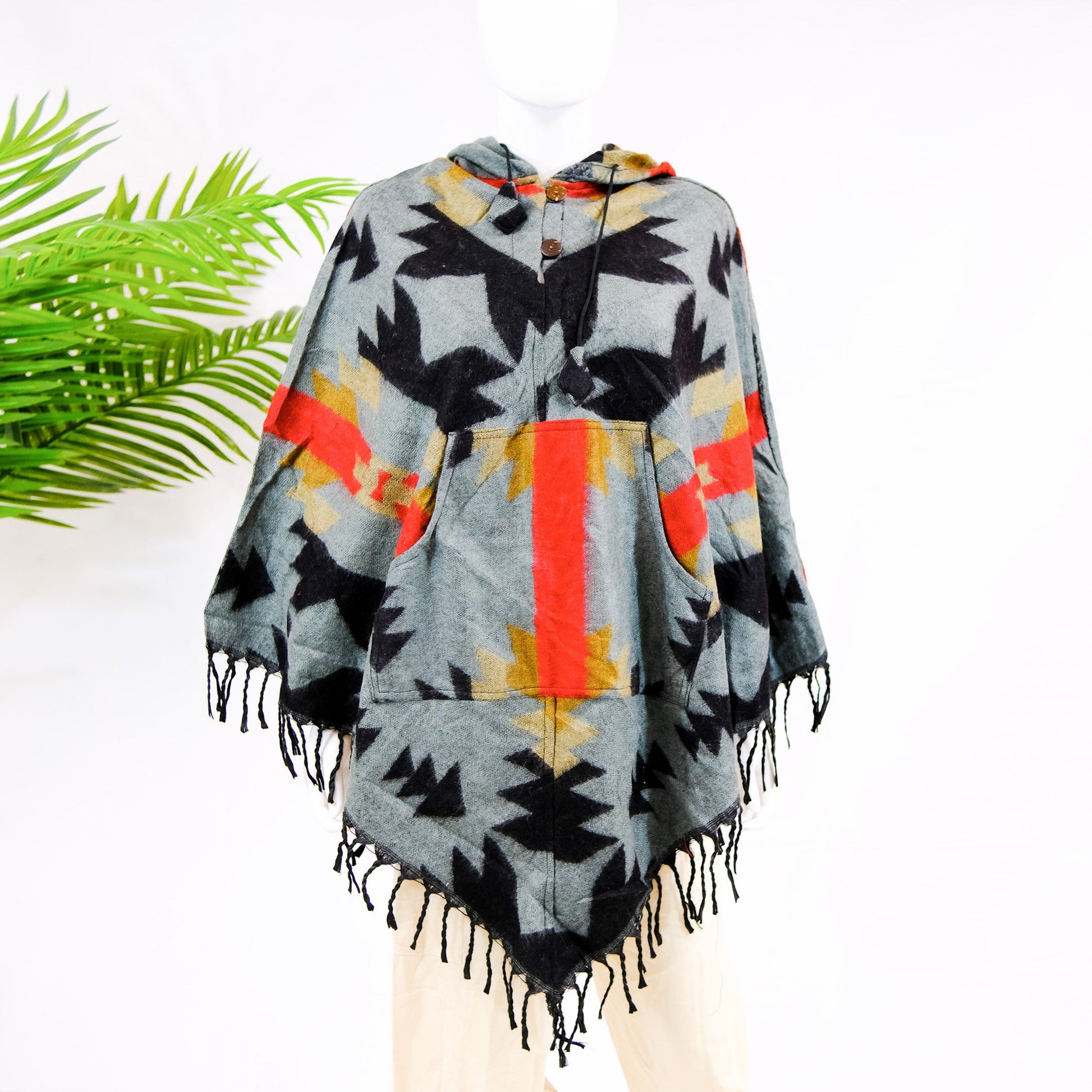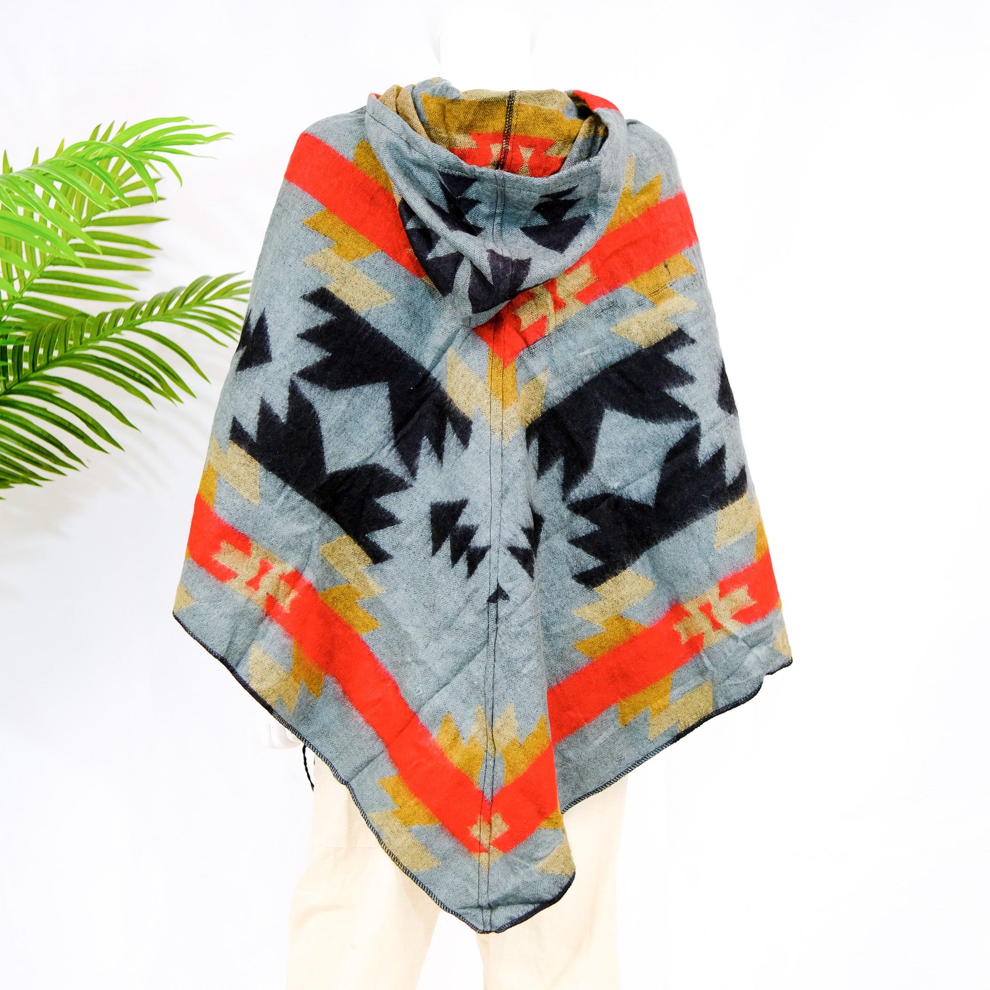 Stay cozy this fall and winter with this handmade wool blend pull over. Made with a mix of wool and soft materials, this hooded poncho is non-itchy, warm, and comfortable. The versatile unisex style can be worn as a wrap and features pockets to store phones and other things