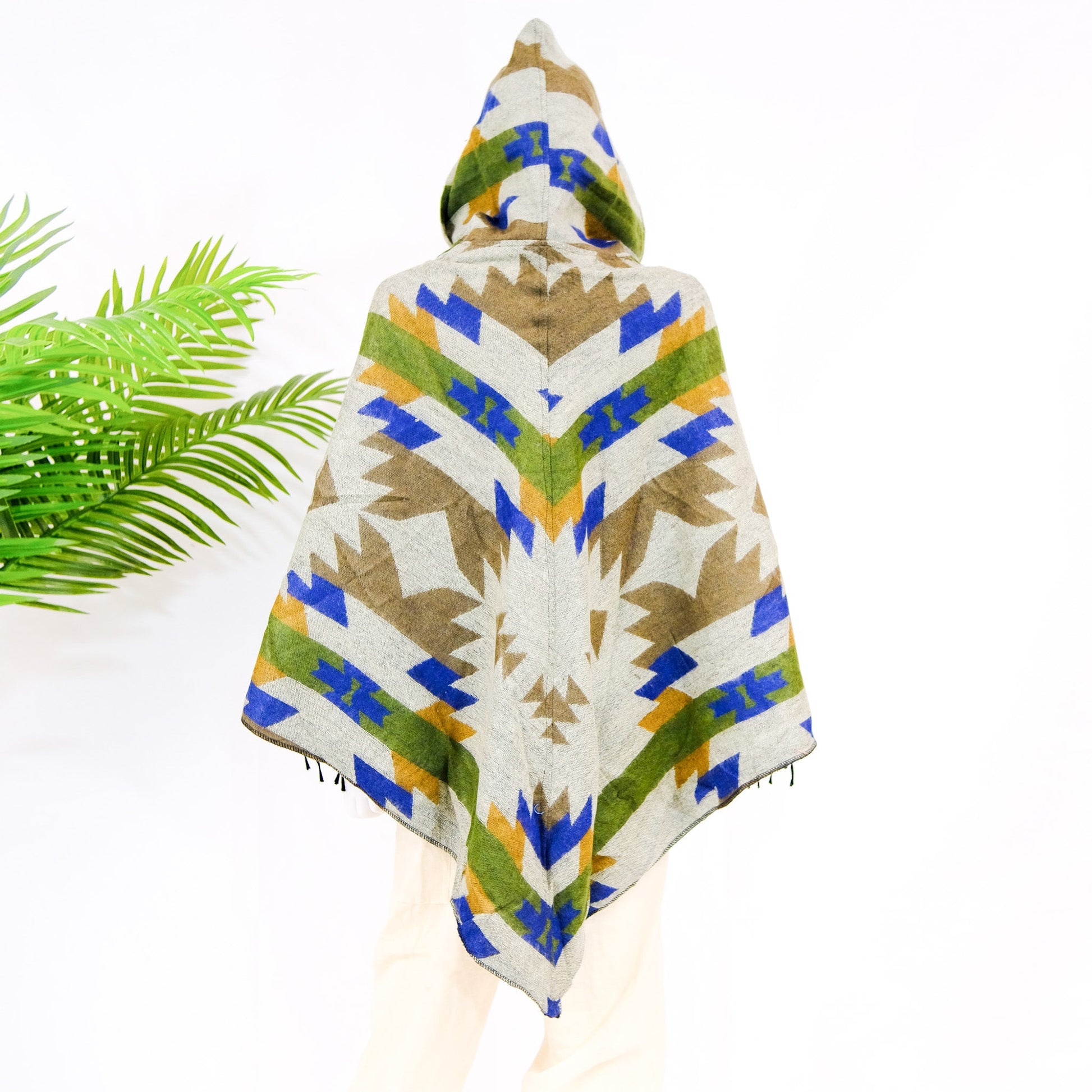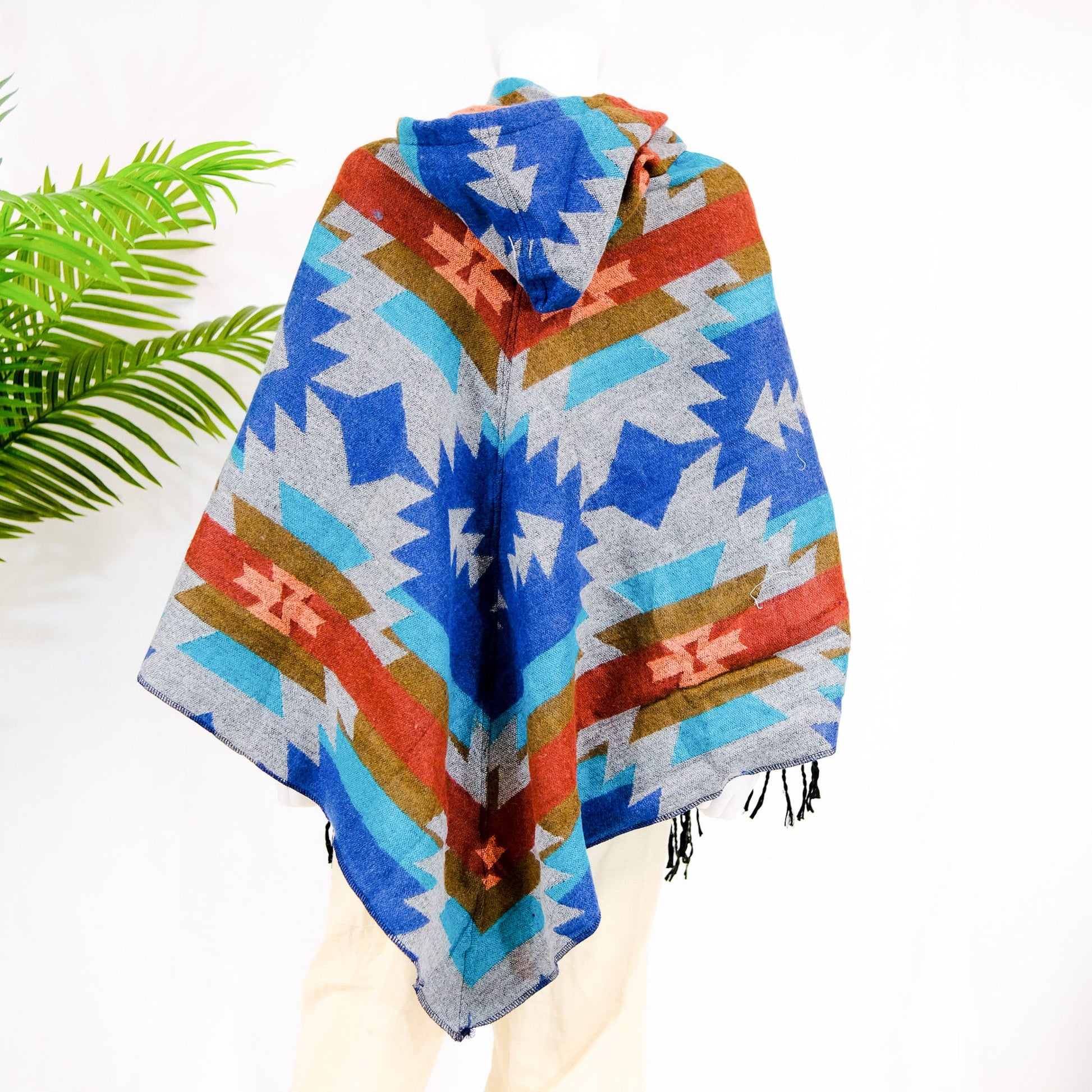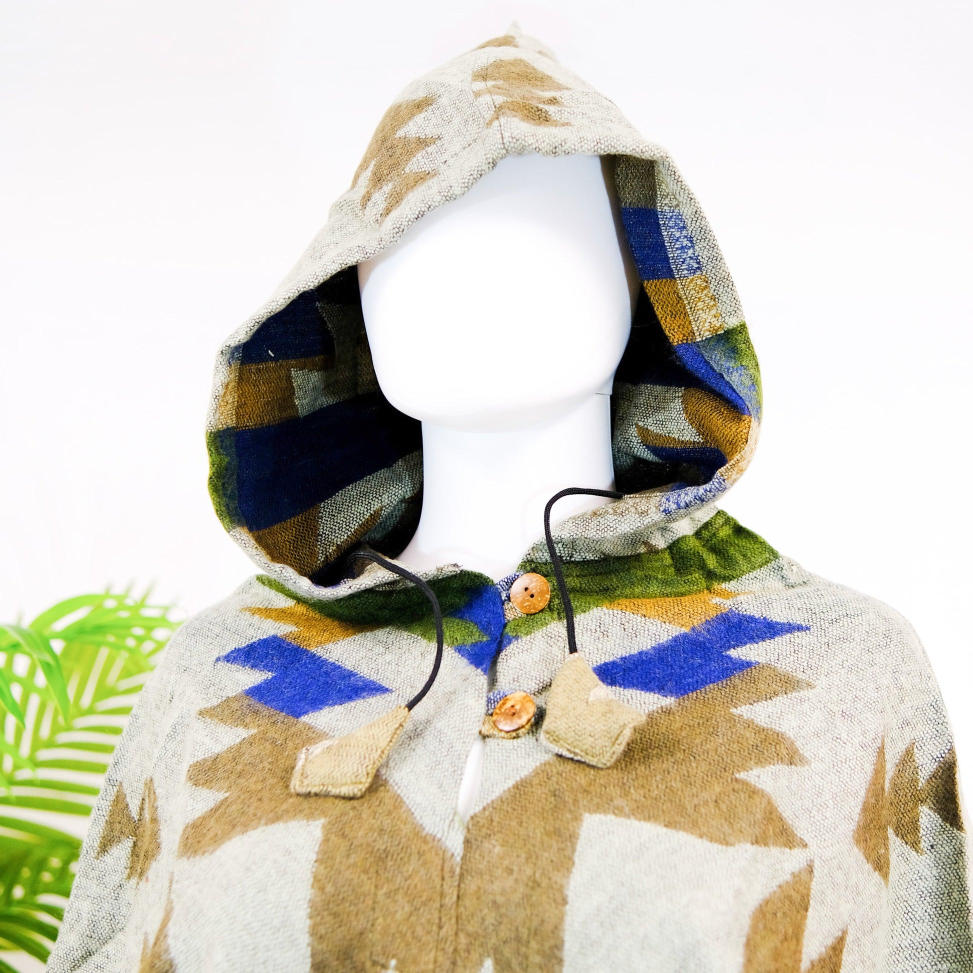 Stay cozy this fall and winter with this handmade wool blend pull over. Made with a mix of wool and soft materials, this hooded poncho is non-itchy, warm, and comfortable. The versatile unisex style can be worn as a wrap and features pockets to store phones and other things
